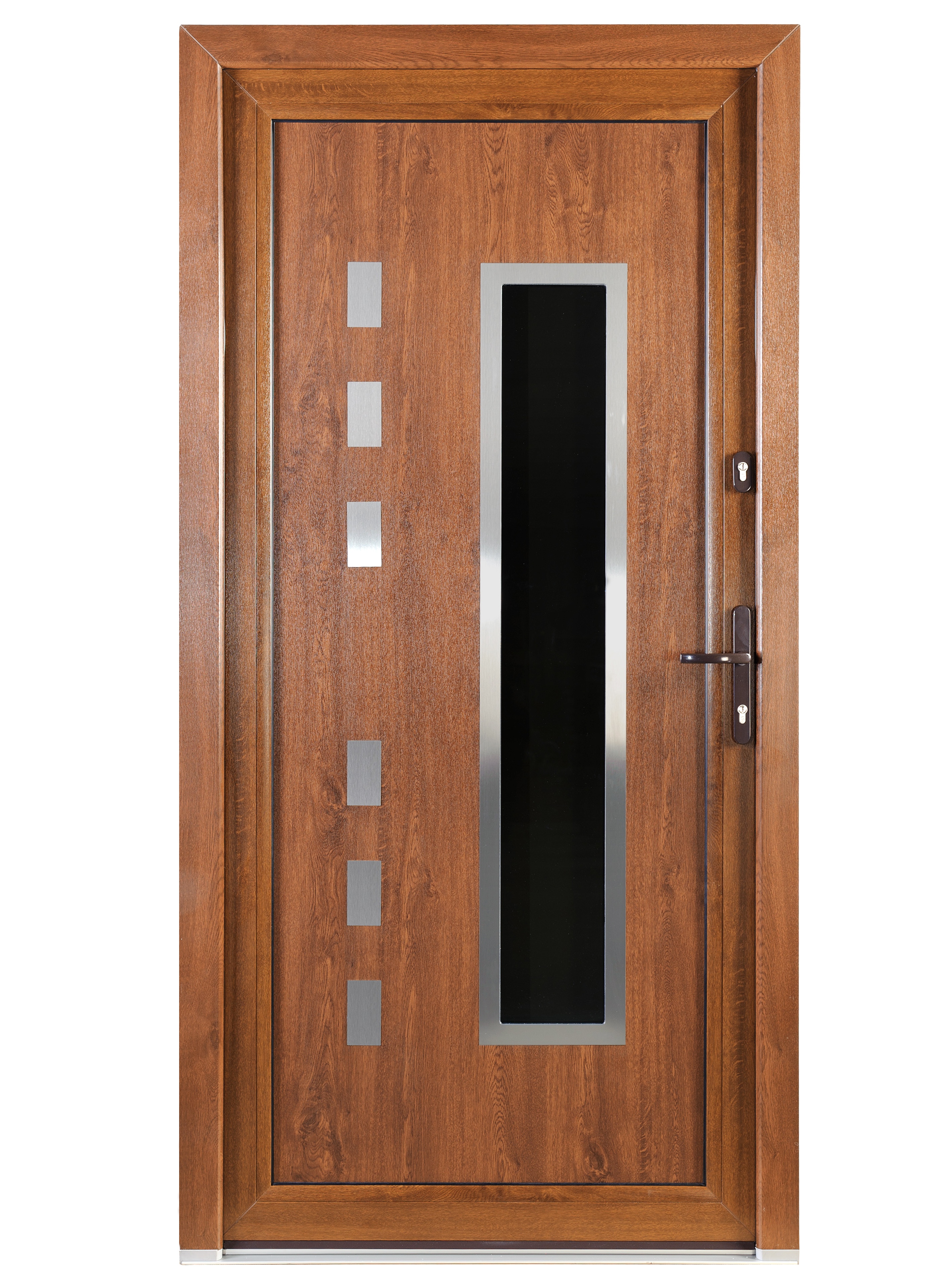 Vi erbjuder stort urval av handtag, draghandtag, knoppar och annan tilläggsutrustning. Mångfäld av tillgängliga färger och fyllningsmönster påverkar dörrens attraktiva design och individuell karaktär av varje projekt. Hög funktionalitetsgrad och användningskomfort garanteras av stålförstärkningar i dörrar samt komponenter av hög kvalitet. Iglo Energy dörrar har utrustats med marknadens modernaste dörrlås: Z-TF MF BO från den erkända producenten MACO. Multifunktionella spärrar och två stålpluggar garanterar ett optimalt och konstant tryck på hela höjden. Efter stängning låses dörrbladet i tre punkter. Utomordentlig energibesparing tack vare proflens 5-kammars konstruktion och ett innovativt tätningsystem av skummad EPDM (i Iglo Energy dörrar). En tröskel med termisk mellanlägg som begränsar värmeförluster levereras i standard. Hög säkerhetsgrad Ett automatiskt spanjolett låssystem med 3 punkter ger den högsta säkerhetsnivån. MACO:s beslag och gångjärn av hög kvalitet förhindrar att dörrbladet lyfts ur karmen.Tillämpning av minst tre HAPS P700 gångjärn i aluminium samt aluminiumtröskel garanterar en långvarig användning av dörrar. Konstruktionens optimala konstruktion och stabilitet Varje modell av dörfyllning tillverkas av HPL2 plåt/ polyuretanskum/aluminiumplåt 1mm/ polyuretanskum/ HPL2 plåt. Tillämpningar är utförda av rostfritt stål och olika prydnader kan användas på dörrens båda sidor, vilket garanterar snygg utseende både inom- och utomhus. Dörrfyllning är 36 mm tjock.